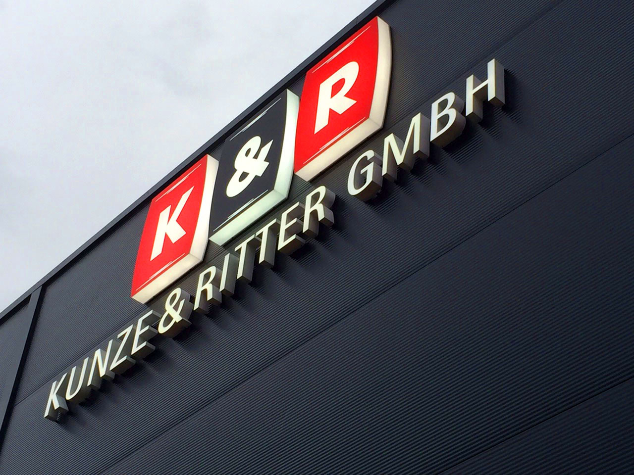 Für den Neubau der Kunze & Ritter GmbH im Gewerbegebiet Oberer Eckweg in Villingen haben wir die neue Gebäudebeschriftung entworfen. Die Entwürfe, die wir im Photoshop aufgebaut haben, verdeutlichten dem Kunden schon sehr früh, im Rohbau, erste Eindrücke des Endergebnisses.