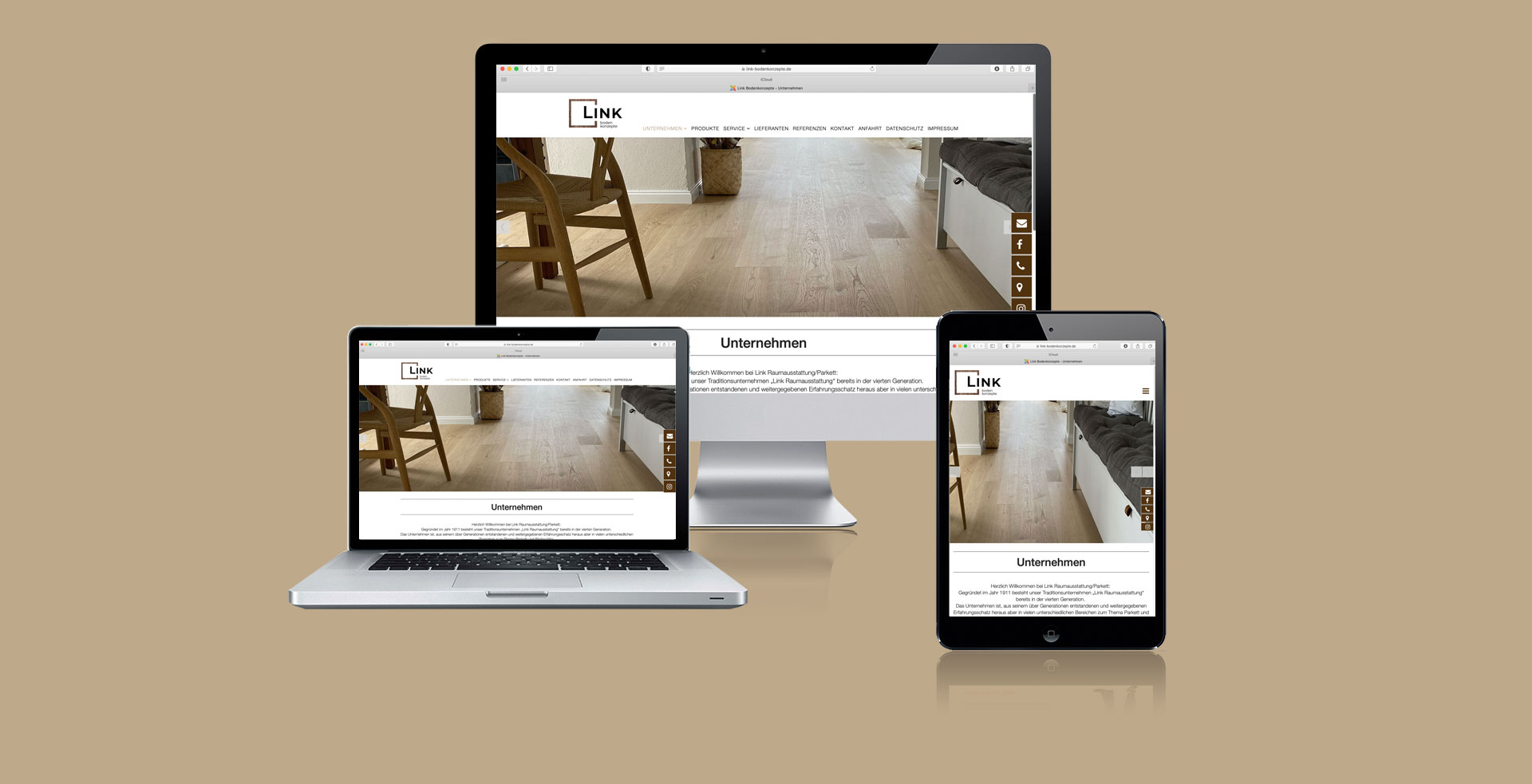 Der Anspruch ist es Parkettböden mit höchster fachlicher Kompetenz und Sorgfalt nach den Wünschen der Kunden zu verarbeiten. Um diesem Anspruch auch beim Erscheinungsbild gerecht zu werden haben wir für Link Bodenkonzepte das komplette Corporate Design neu aufgestellt. Vom Logo über Geschäftsaustattung, Responsive Website,  Bauplane, Fahrzeugbeklebung bis hin zum Block wurde alles neu gestaltet.